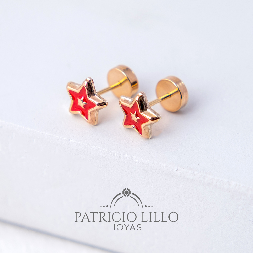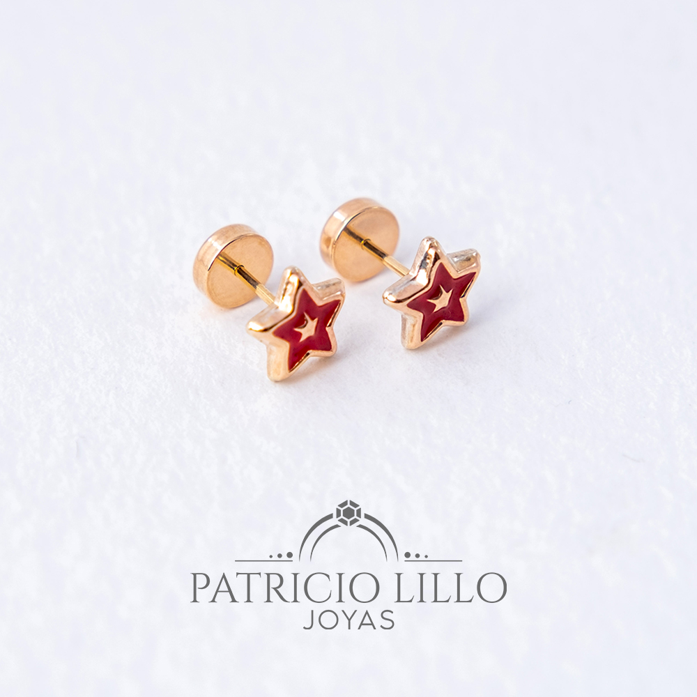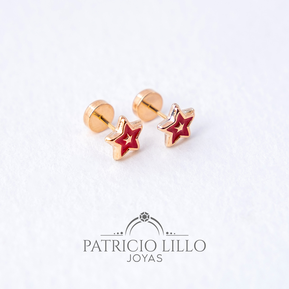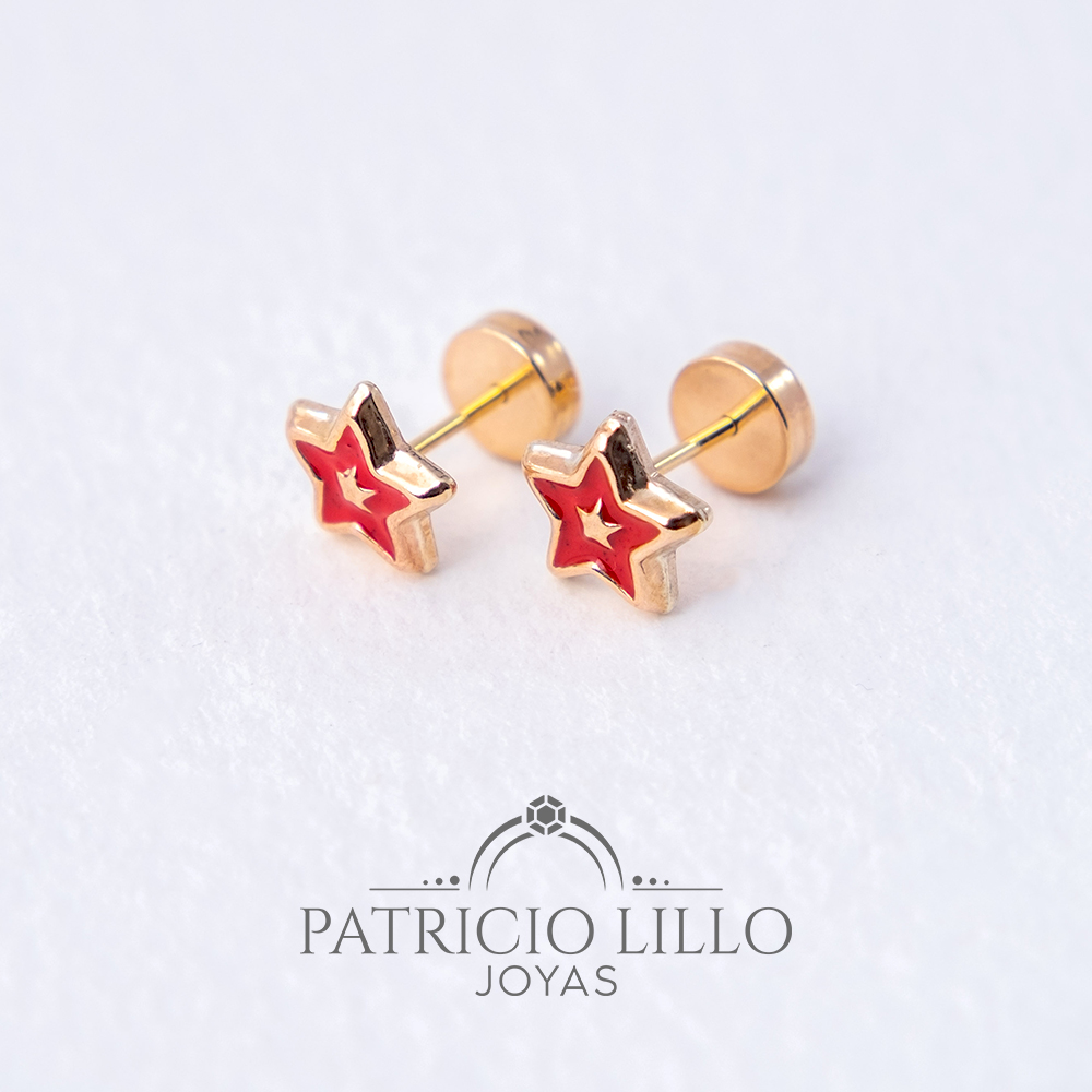 Hermoso abridor oro 14k estrella laqueada color roja 6mm