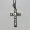 Conjunto oro blanco 18k cadena singapur 45 cm y cruz con incrustaciones en rubíes peso total 1,9 grs (estuche y garantía incluídos)
